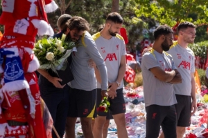 体育资讯7月12日讯 利物浦全队及工作人员在安菲尔德向若塔和安德烈-席尔瓦表示哀悼,与两位兄弟的家人一同缅怀。